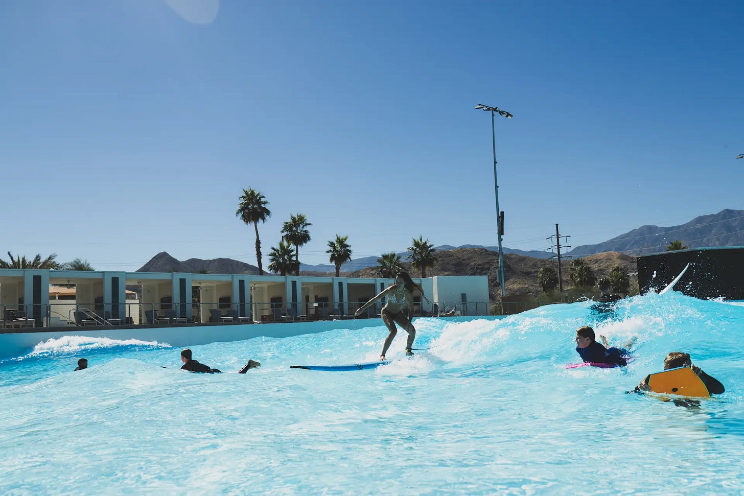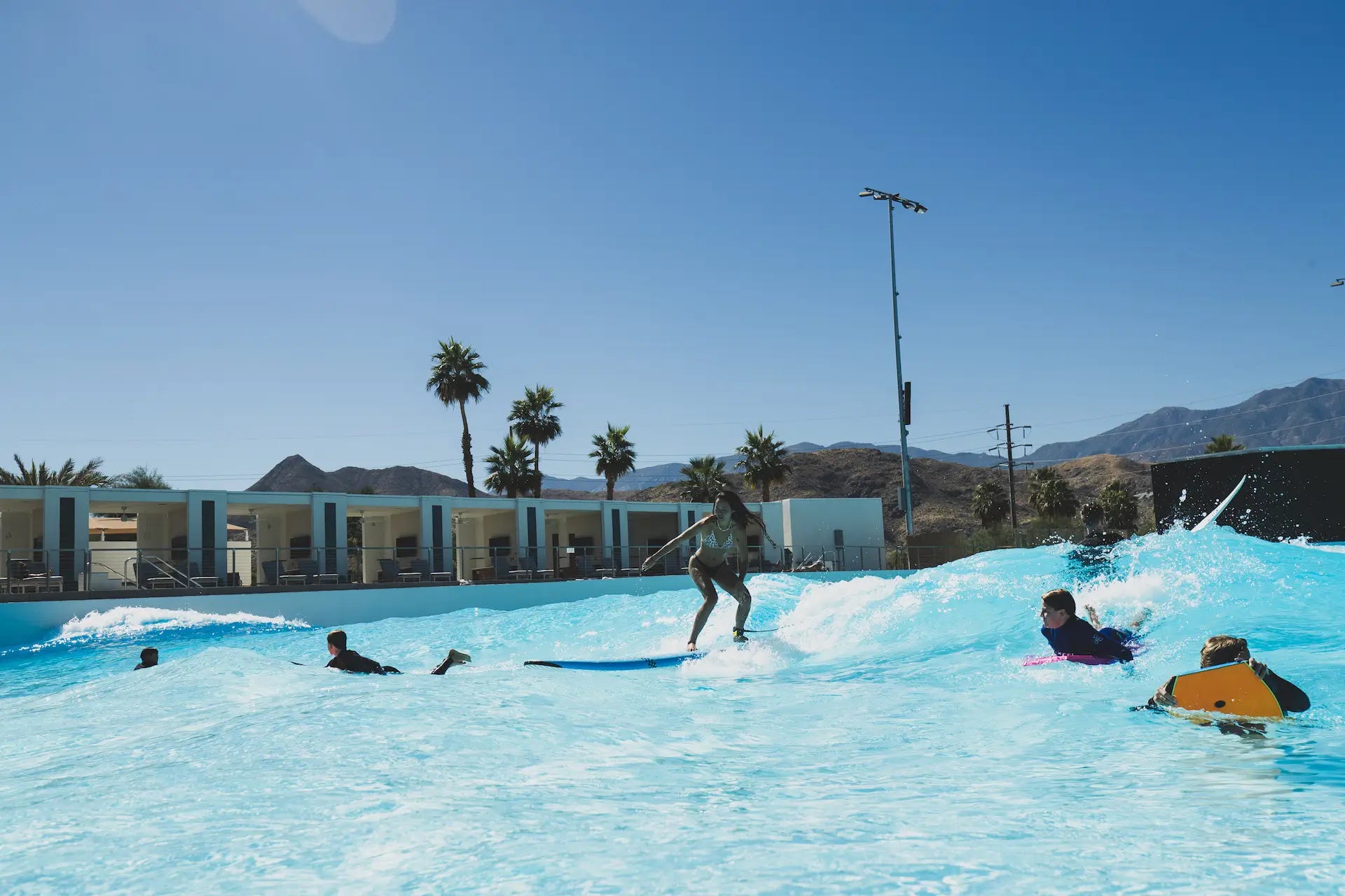 Most traveling wave pools are programmable. The pool has the ability to produce different types of waves in the same space at different times. This is good and bad. It means that the same space can cater to visitors of different skill levels--from beginner to the best in the world. But it also means that only visitors who meet specific skill levels can utilize the space within the same session time. For example, the Surf Loch wave pool at Palm Springs Surf Club may be able to run intermediate level waves and also accommodate first-timers in the bay, but it can not run both intermediate and advanced waves at the same time.